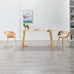 VidaXL Eetkamerstoel Gebogen Hout En Kunstleer Crèmekleurig