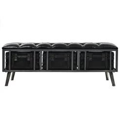 VidaXL Opbergbankenset 112x37x45 Cm Massief Hout En Staal 3-delig