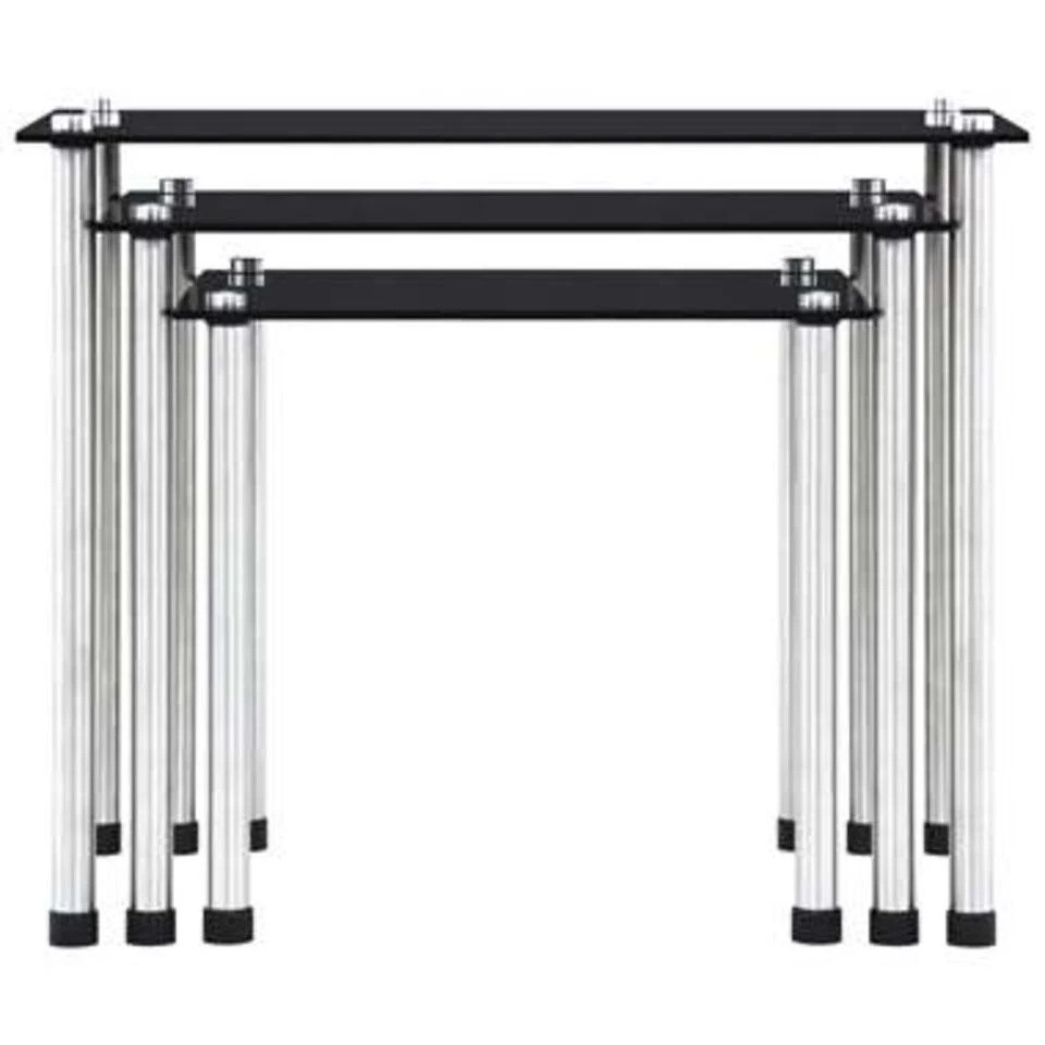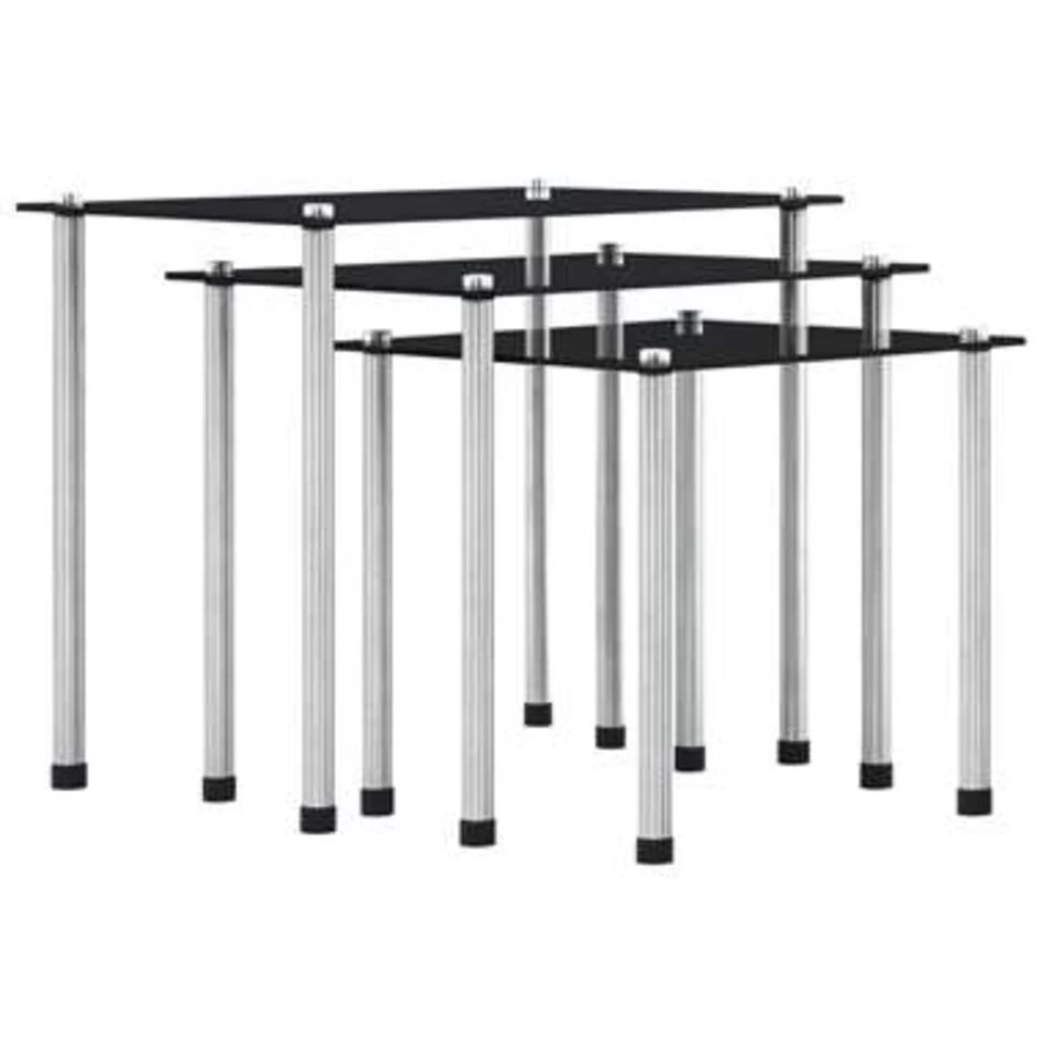 Deze set van 3 tafeltjes is gemaakt van dik gehard glas en robuuste, duurzame aluminium poten waardoor hij buitengewoon stevig en veilig is. Op het tafelblad kunnen boeken, tijdschriften, fruitmanden en andere kleine spullen die je graag binnen handbereik wilt hebben, geplaatst worden. Het gladde oppervlak is eenvoudig schoon te maken met een vochtige doek. Je kunt de tafels samen of los van elkaar gebruiken en ze in elkaar schuiven om ruimte te besparen wanneer ze niet worden gebruikt. Onze tafeltjesset is eenvoudig te monteren.