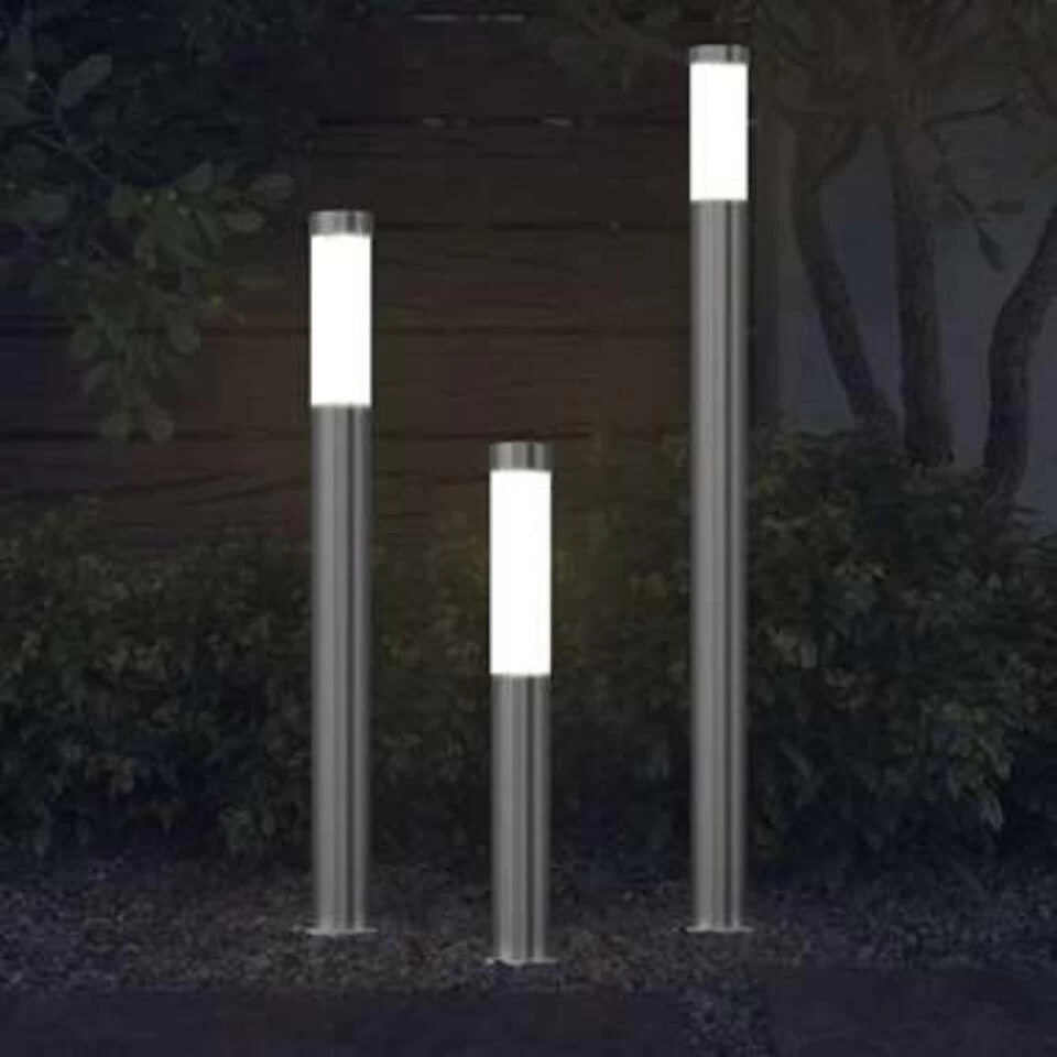 Deze tuinverlichting set bestaat uit 3 lampen met verschillende hoogtes van 39, 69 en 109 centimeter. De tuinlampen hebben een waterdichte RVS behuizing en een opaal kunststof venster voor een mooi sfeerlicht dat niet verblindt. De buitenlampen zijn geschikt voor alle soorten lampen met een E27 fitting en een maximaal vermogen van 60 Watt.