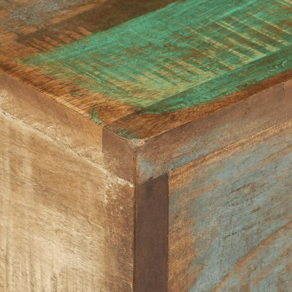 De banktafel is handgemaakt van massief gerecycled hout, een combinatie van teruggewonnen hout, waaronder teakhout, mangohout, grenenhout en beukenhout. Dit hout is afkomstig uit oude gebouwen, zoals fabrieken, schuren en boten. Dit betekent dat het een milieuvriendelijke optie is voor het maken van meubelen. Omdat elk meubelstuk handgemaakt is, variëren de kleuren van blauw, groen, crème tot oranje, rood en roze tinten. Dit betekent dus dat elk meubel uniek is! Bovendien dragen de gepoedercoat ijzeren poten bij aan de stevigheid en stabiliteit.