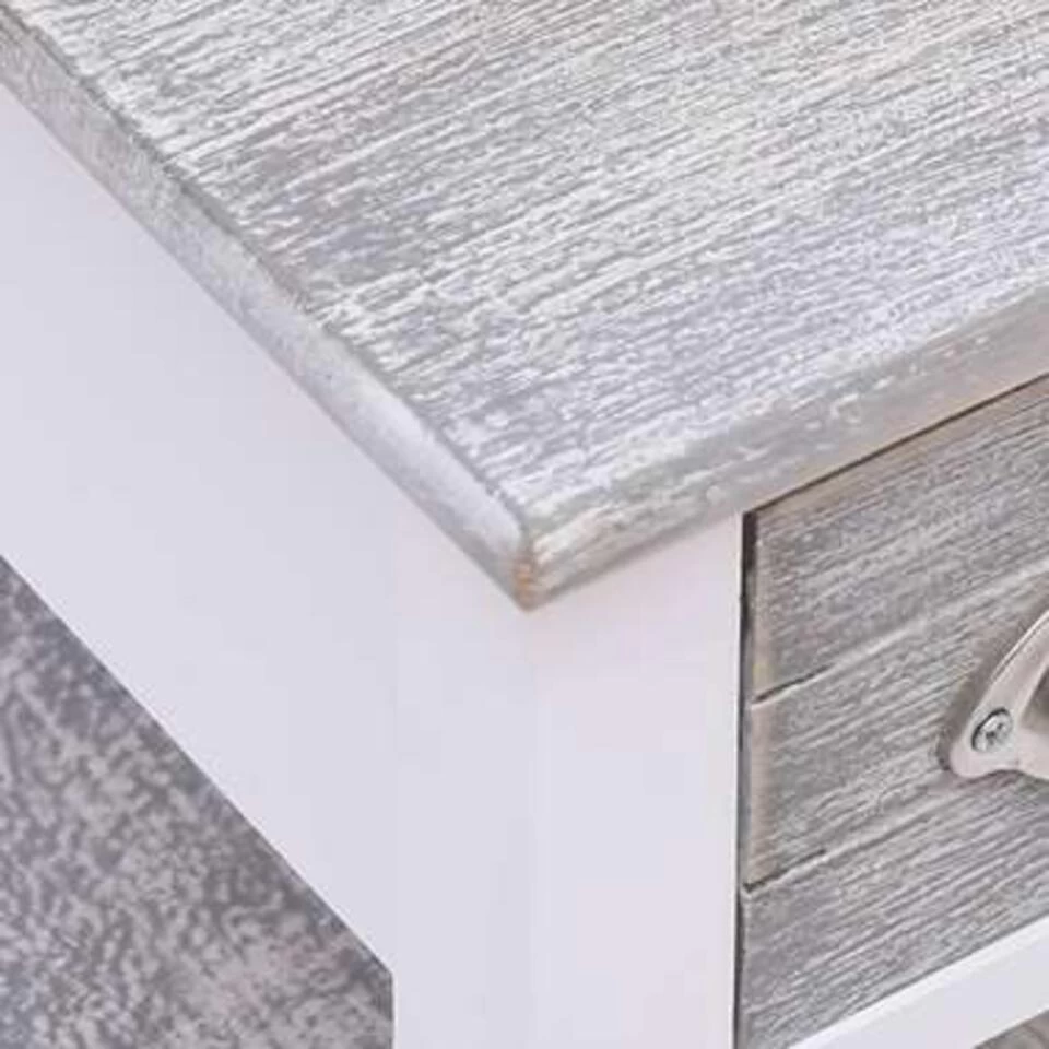 Deze salontafel is gemaakt van paulowniahout en is duurzaam en stevig. De tafel biedt veel opbergruimte dankzij de 2 lades en het onderste schap. Het stevige tafelblad is ideaal voor het uitstallen van decoratieve objecten, fotolijsten en potplanten. Hij is gemakkelijk schoon te maken met een vochtige doek. De bijzettafel is eenvoudig te monteren.