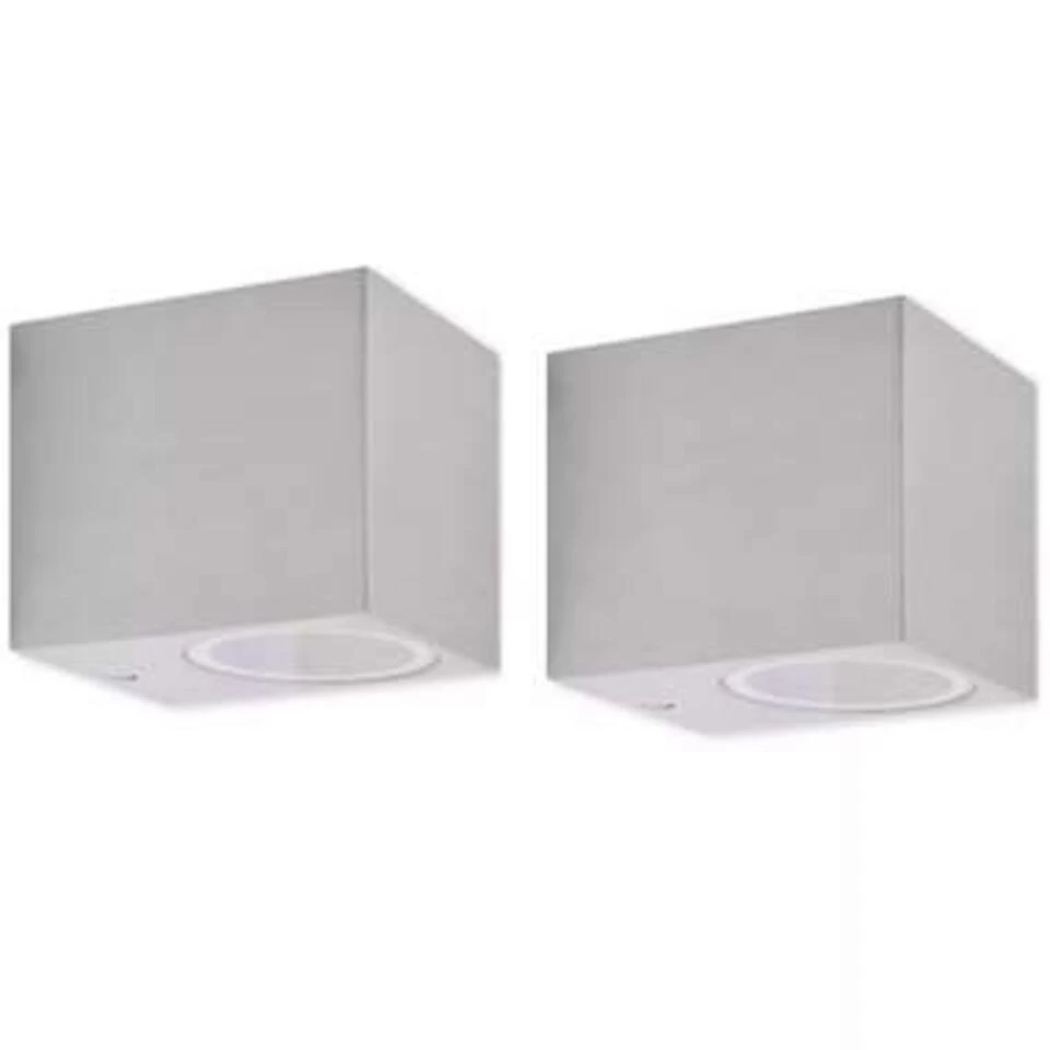 Deze set van 2 kubusvormige buitenlampen heeft een minimalistisch, modern ontwerp. De gestroomlijnde wandlampen, gemaakt van aluminium met een roestvrijstalen uitstraling, zullen elke tuin een mooie uitstraling geven. De geïntegreerde glazen diffuser draagt bij aan de algehele uitstraling van de set.