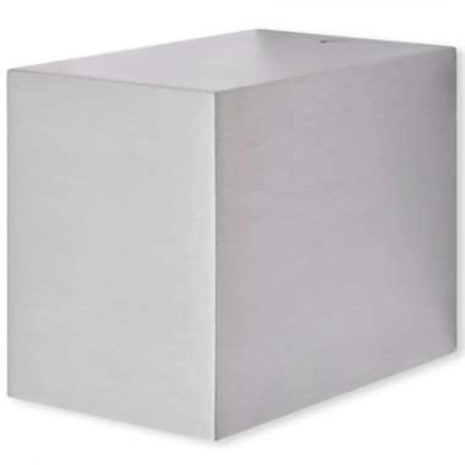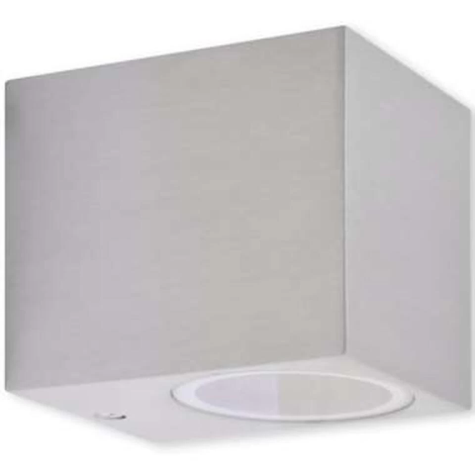 Deze kubusvormige wandlamp voor buiten is geschikt voor lampen met een maximaal vermogen van 50 Watt. Let op, de lamp is niet meegeleverd.