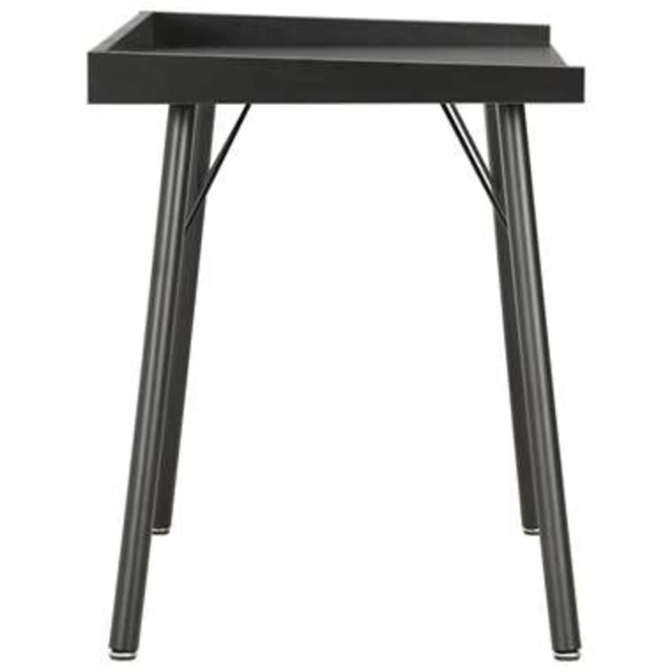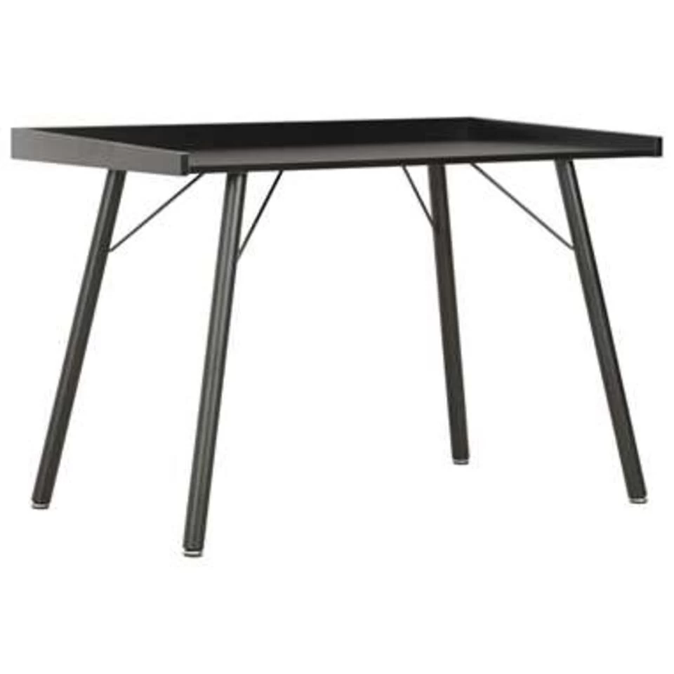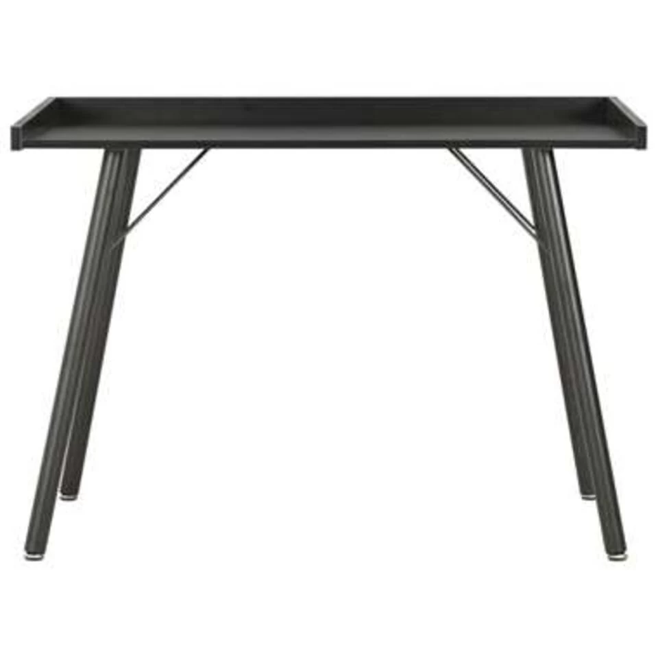 Dit compacte bureau heeft een ingetogen maar praktisch ontwerp en is een handige toevoeging aan je werk- of studeerkamer. De verhoogde achterkant en het grote blad bieden ruimte aan boeken en kleine spulletjes, zoals pennen. Zo kan je alles netjes geordend houden. Dit bureau kan ook gebruikt worden als schrijftafel of knutseltafel.