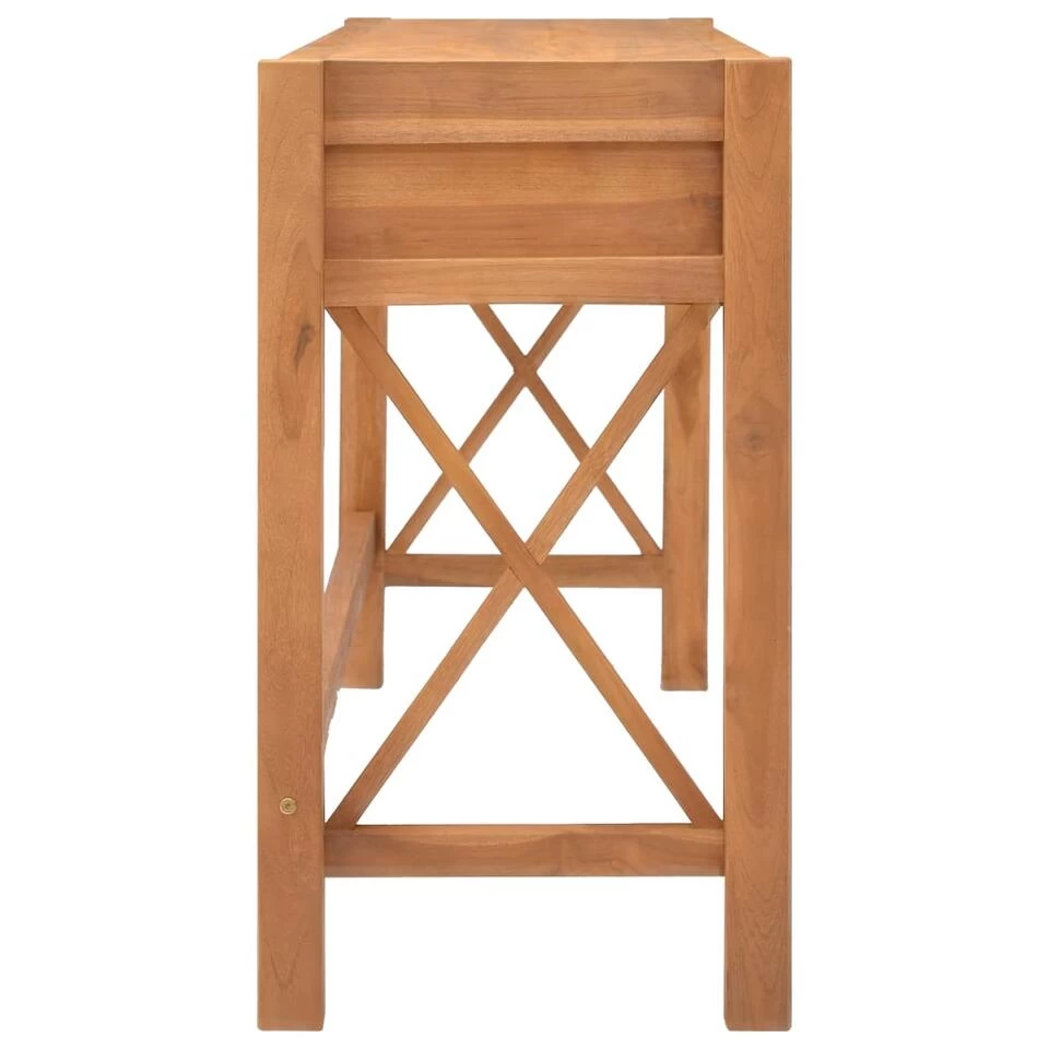 Het bureau is gemaakt van massief teakhout. Elke stap van het proces wordt met de grootste zorg uitgevoerd, of het nu gaat om polijsten, schilderen of lakken. Het vakmanschap en de prachtige houtnerven maken elk meubel uniek en net iets anders dan de rest. Het bureau is stabiel en duurzaam, maar is ook esthetische aantrekkelijk. Het houten frame biedt extra stabiliteit en de 2 lades bieden voldoende ruimte om je spullen georganiseerd en binnen handbereik te houden.