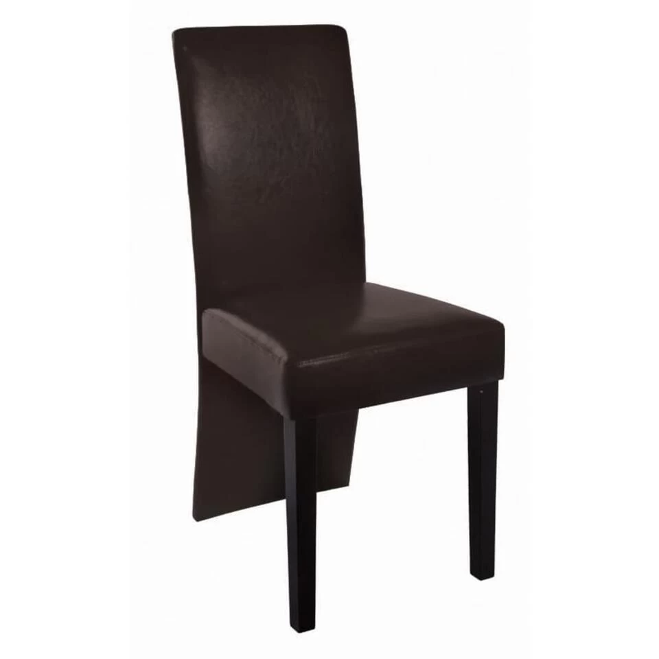 Deze mooie eetkamerstoelen hebben een modern ontwerp en vallen zeker op in je keuken of woonkamer. De stoelen zijn gemaakt van donkerbruin kunstleer en de zittingen zijn gevuld met comfortabele voering. Dit zorgt ervoor dat je comfortabel aan tafel zit tijdens de maaltijd, tijdens een gezelschapsspel en bij andere activiteiten.