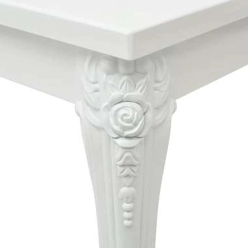 De glanzende hoogglans witte afwerking weerspiegelt licht, wat een grote bijdrage levert aan je eetervaring. Deze eetkamertafel is gemaakt van medium density fiberboard (MDF). Hij heeft vier stevige poten van lichtgewicht kunststof.