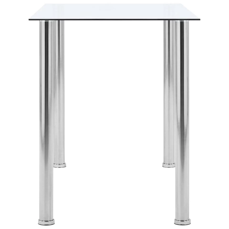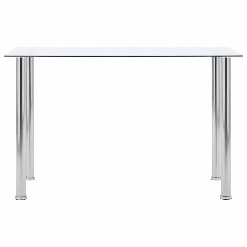 De eettafel heeft een glad, gehard glazen tafelblad dat gemakkelijk te reinigen is met een vochtige doek. Het roestvrijstalen frame draagt bij aan de massieve constructie en zorgt voor hoge stabiliteit en duurzaamheid. De tafel is eenvoudig te monteren.