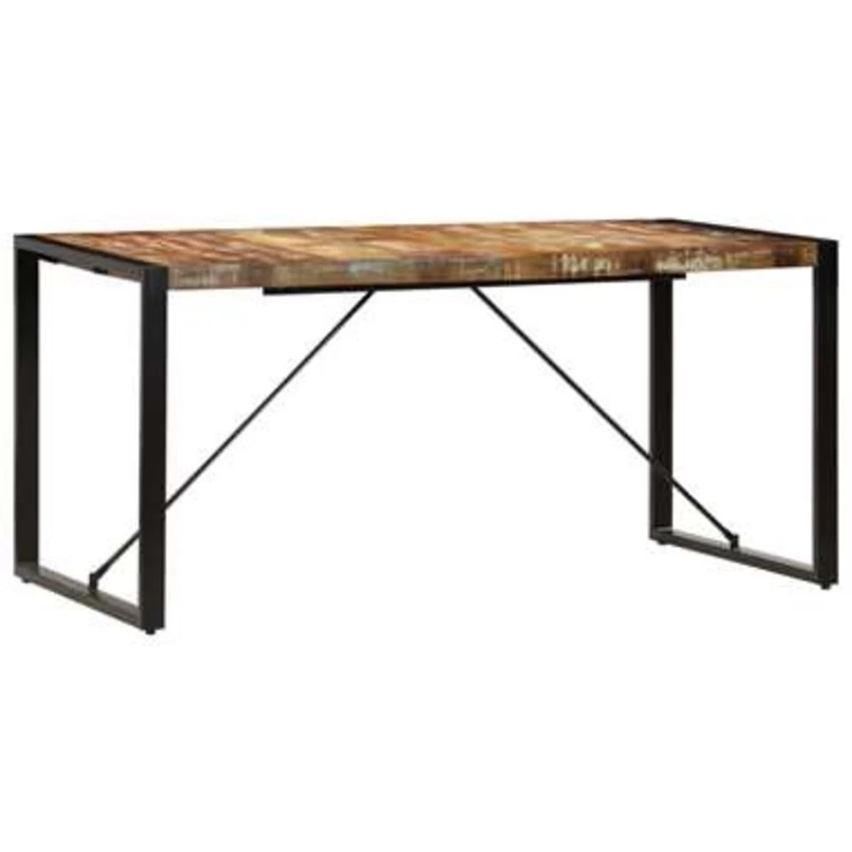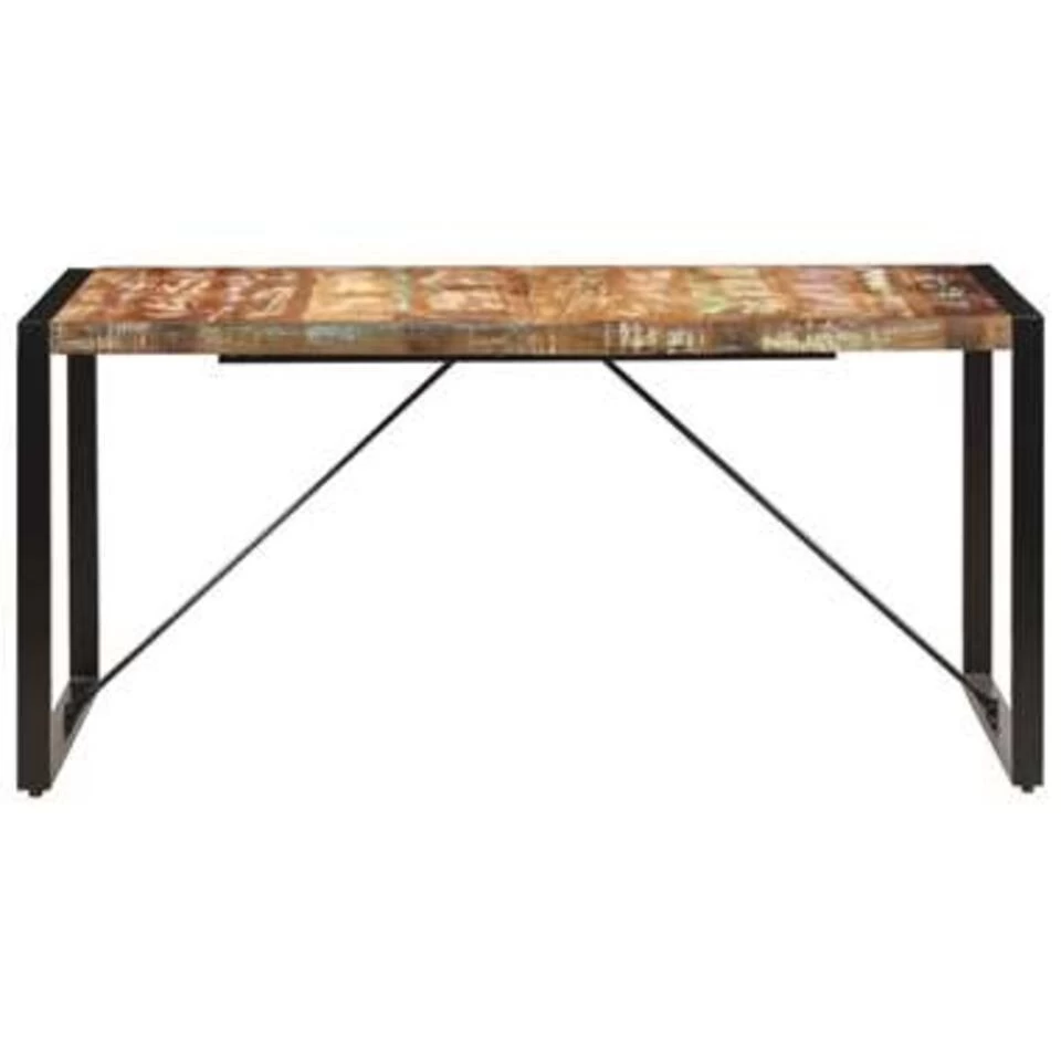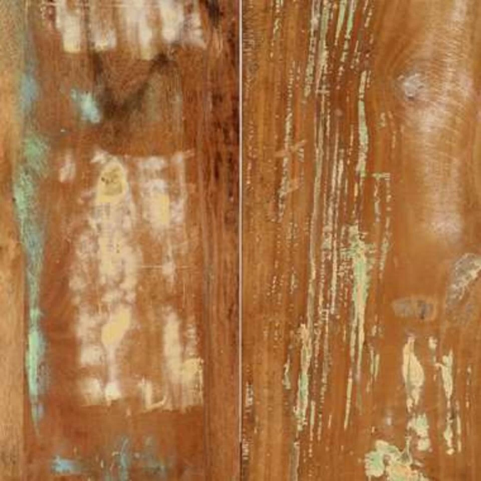 De eetkamertafel in antieke stijl is gemaakt van massief gerecycled hout dat afkomstig is van balken, vloeren en steunbalken van oude gebouwen die zijn gesloopt. Dit hout bestaat uit verschillende houtsoorten, zoals grenen, teak, beuken, eiken, ceder, mangohout en acacia. Dit betekent dat het teruggewonnen hout de kenmerken van deze verschillende houtsoorten heeft. Gerecycled hout is al verouderd, verweerd en gedroogd en krimpt en buigt daarom niet. Deze tafel is volledig met de hand gemaakt en de elegante houtnerven maken elk meubelstuk bijzonder en net iets anders dan de rest. Daarnaast dragen de sterke gepoedercoat stalen poten bij aan de stevigheid van de tafel. De eettafel is eenvoudig te monteren.