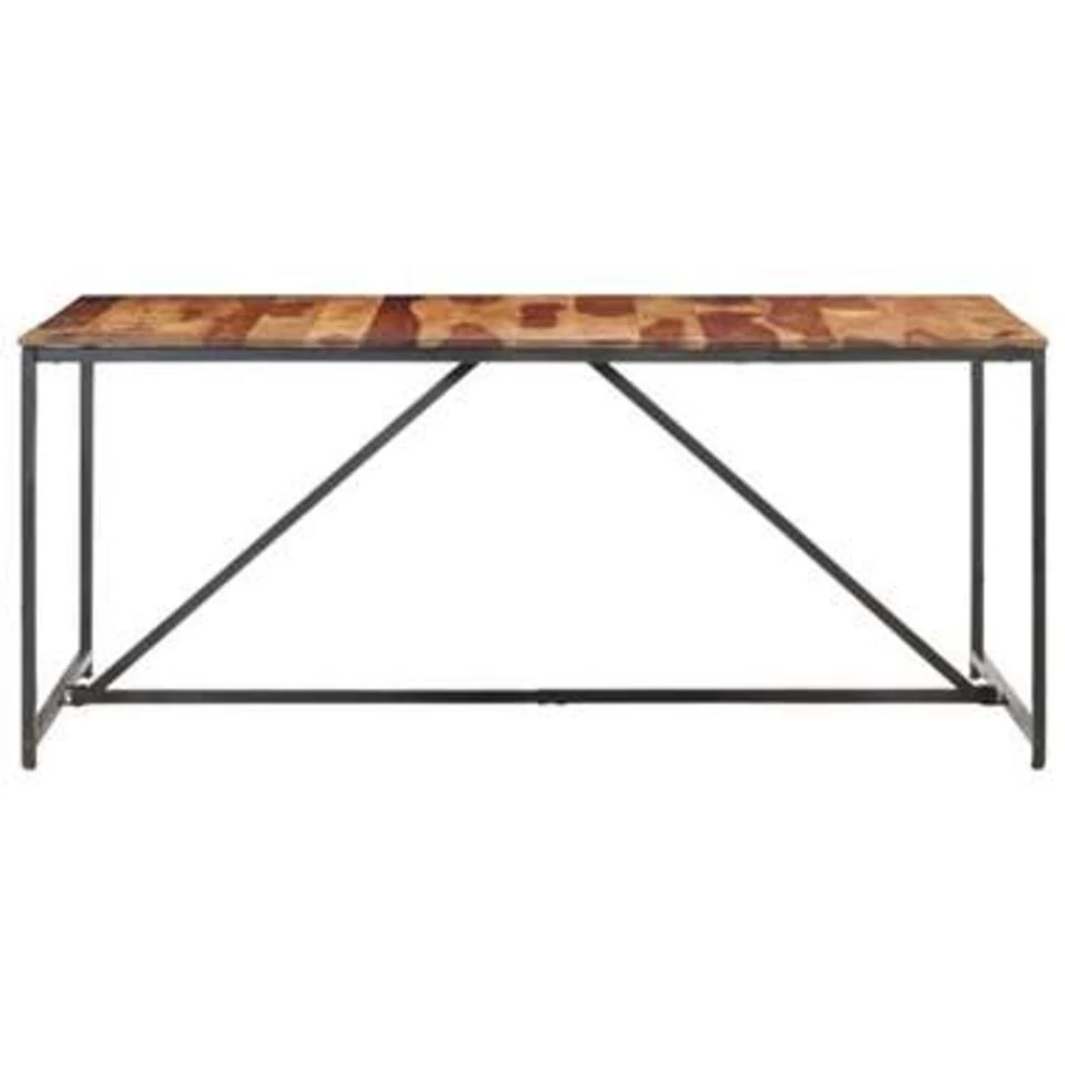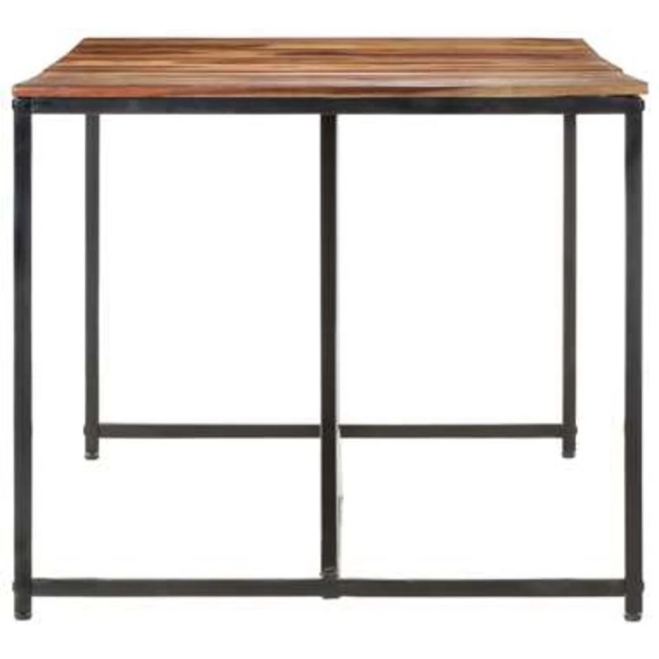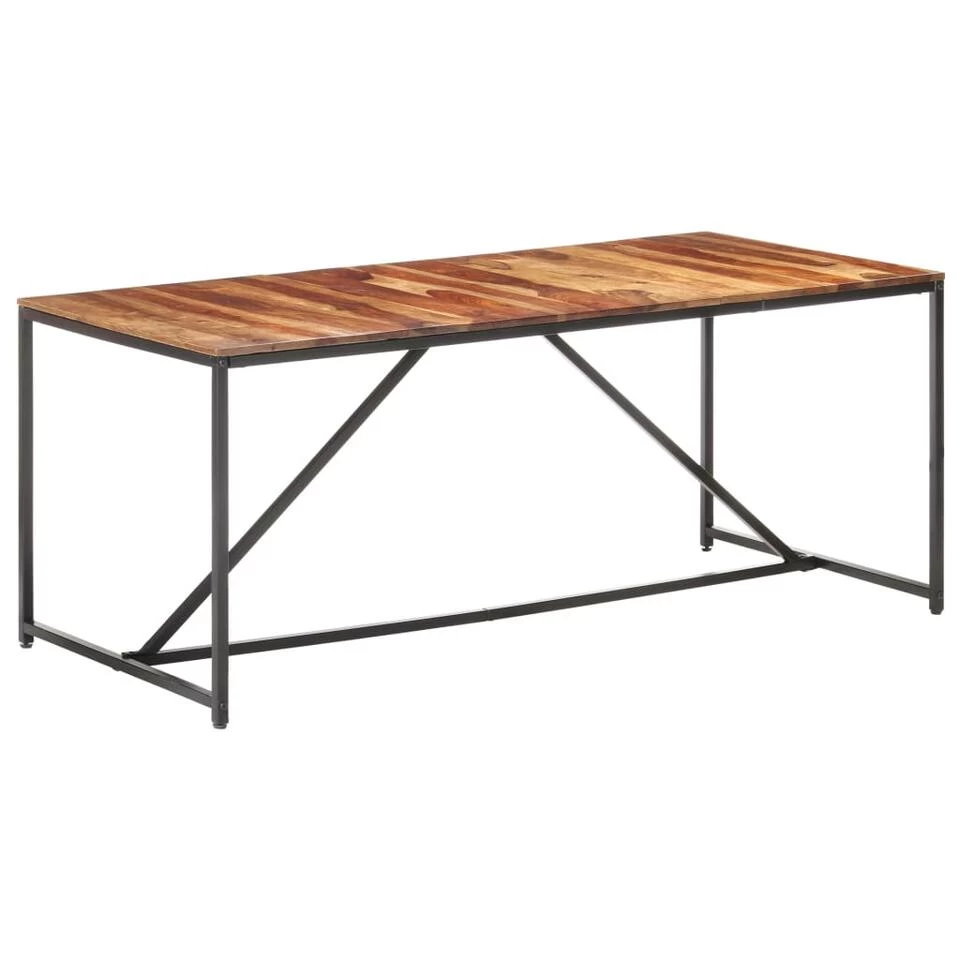 Deze houten eetkamertafel is gemaakt van massief sheeshamhout, dat ook wel bekend staat als rozenhout of palissander. Dit hout is een tropisch hardhout dat bekend staat om zijn natuurlijke nerven en gladde textuur. Het voortreffelijke vakmanschap draagt bij aan de spectaculaire retrostijl van de tafel. De zwarte gepoedercoat stalen poten maken het industriële uiterlijk compleet. Elke stap van het proces wordt met de grootste zorg uitgevoerd, of het nu polijsten, schilderen of lakken is. Onze tafel is eenvoudig te monteren.
