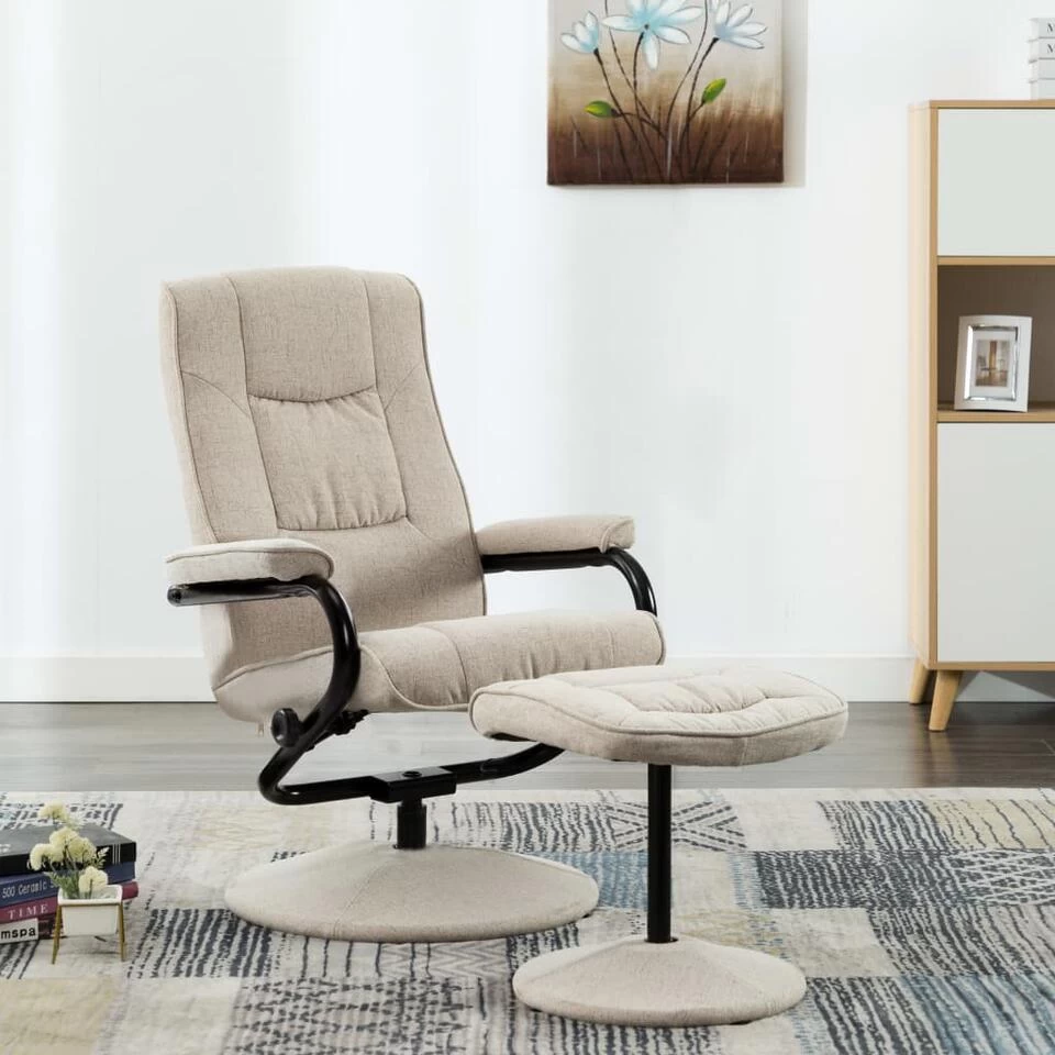 Deze tv-fauteuil, compleet met een voetenbank, combineert stijl en functionaliteit.