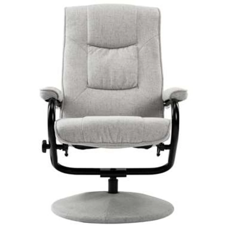 De stoel heeft een stevig houten en metalen frame gevuld met schuim met hoge dichtheid en is bekleed met hoogwaardige stof voor maximaal comfort. De dikke zitting en zachte rugleuning zijn zeer comfortabel. Daarnaast kan de rugleuning naar achteren worden versteld en kan je je voeten op het voetenbankje leggen.