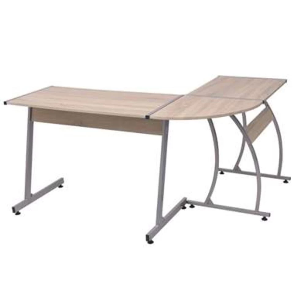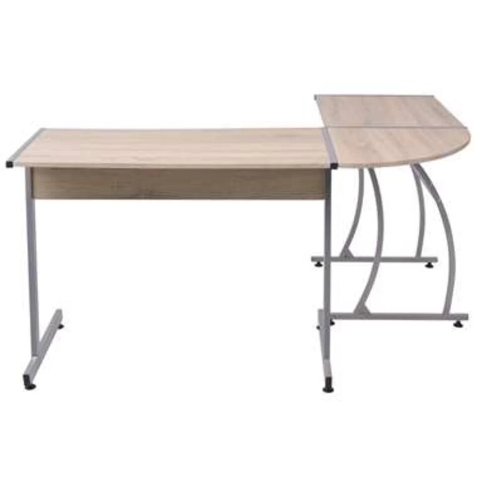 Het hoekbureau bestaat uit een stevig metalen frame en een kwalitatief hoogwaardig blad van spaanplaat, hierdoor is hij sterk, stevig en stabiel. Het grote L-vormige bureau is ideaal om aan te werken of studeren. Hij biedt voldoende ruimte voor uw computer, laptop, boeken, folders, documenten en voor fotolijstjes, decoratieve objecten, kamerplanten, enzovoort.