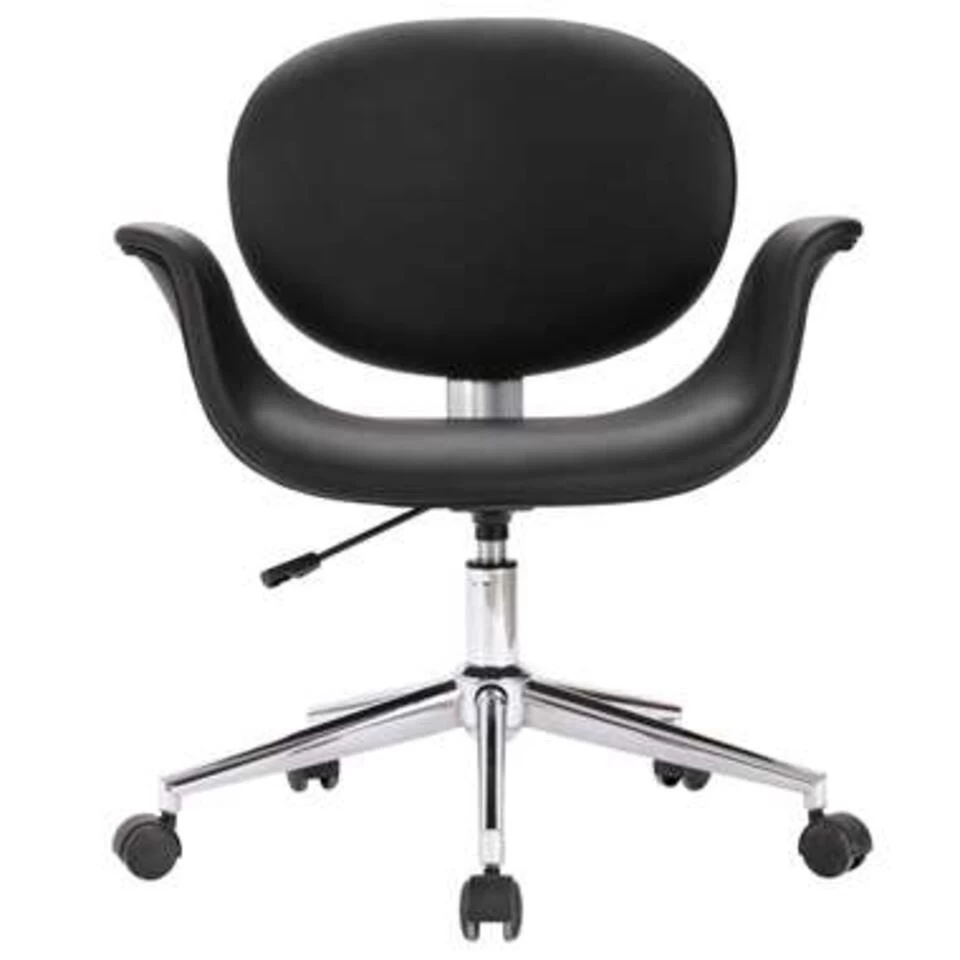 Hij biedt een comfortabele plek voor je gezin om te werken in de studeerkamer of uit te rusten in de woonkamer. De zitting en de rugleuning zijn ergonomisch ontworpen, bekleed met zacht kunstleer en dik gevuld met schuim, waardoor de stoel zeer comfortabel is. De metalen poten dragen bij aan de duurzaamheid en de esthetische uitstraling. De stoel is 360 graden draaibaar en in hoogte verstelbaar dankzij het gasveersysteem.