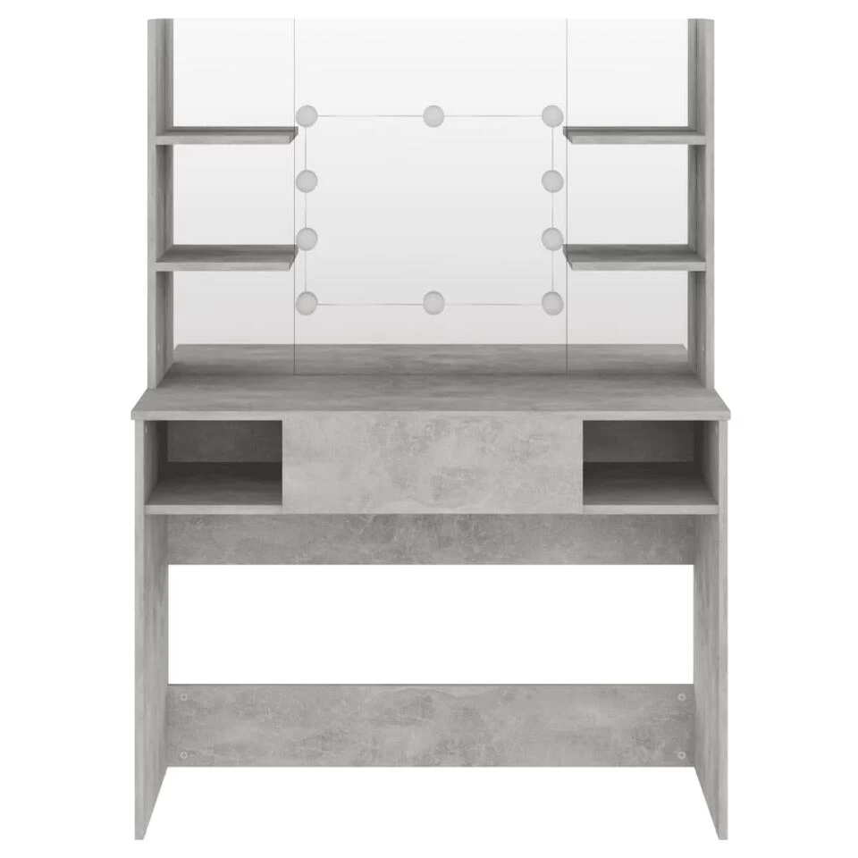 Deze kaptafel, gemaakt van MDF, heeft een strak en beknopt silhouet met een moderne stijl. Hij biedt voldoende ruimte voor make-upartikelen en houdt alles op zijn plaats. Kaptafelspiegel: de prachtige spiegel biedt duidelijk zicht om je make-up aan te brengen en voegt een vleugje elegantie toe aan de kaptafel. De afgebeelde elegante LED-lampen verlichten ook je schoonheid.