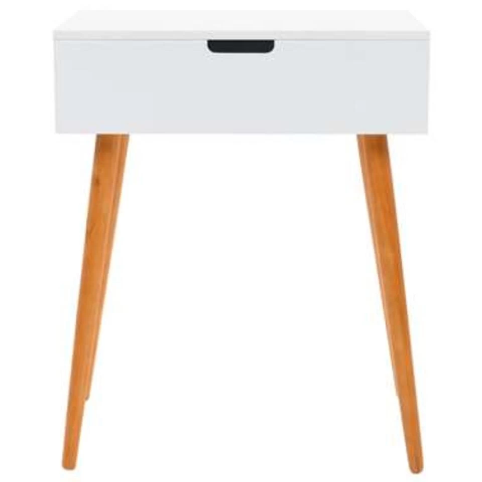Deze tafel is gemaakt van MDF en heeft een glazen spiegel. Hij beschikt over een paneel dat kan worden opgetild om een spiegel en ruime sieradenbakjes te onthullen. Hij biedt voldoende ruimte voor je cosmetica, haarproducten en huidverzorgingsproducten. Wanneer de spiegel niet in gebruik is, is het tafelblad een ideale plek voor make-up, sieraden en schoonheidsproducten. De stevige houten poten dragen tevens bij aan de stabiliteit en aan de moderne stijl uit het midden van de vorige eeuw.
