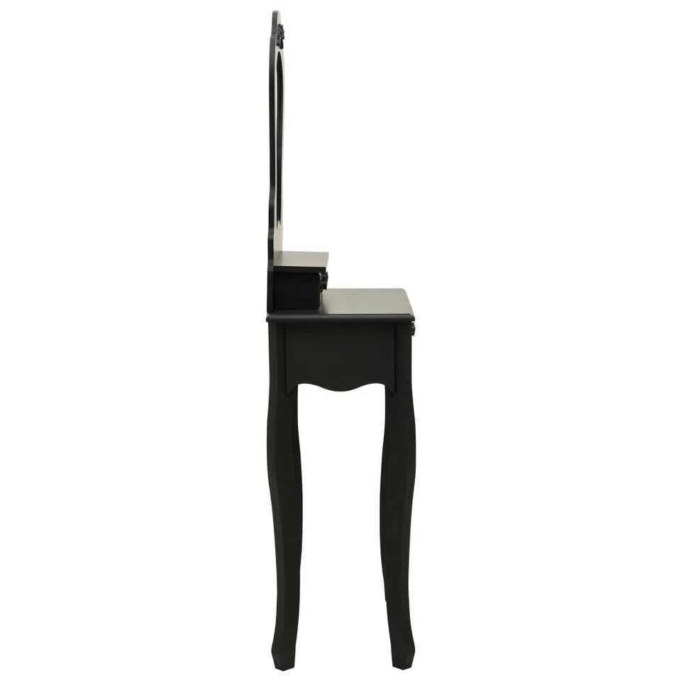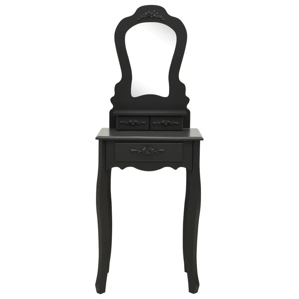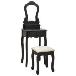 Dit prachtige dressoir is gemaakt van hoogwaardige paulowniahout en heeft een uniek silhouet en vier luxe poten. De 3 lades bieden de perfecte hoeveelheid ruimte voor het opbergen van make-up en sieraden. Het tafelblad is ook een uitstekende plek om flesjes parfum of andere versieringen op te plaatsen. De meegeleverde kruk heeft een rugloze zitting die bestaat uit een kussen met een bijpassend houten onderstel. Bovendien benadrukt de ingebouwde spiegel het silhouet voor een eigentijdse flair.