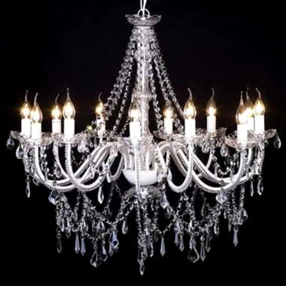 Deze elegante grote kroonluchter heeft een wit metalen frame en is versierd met wel liefst 1600 verschillende kristallen. De kristallen van de kroonluchter zijn gemaakt van helder geslepen glas. De hanglamp heeft 12 armen met ieder een kaarsvormige lampenfitting. Dankzij de heldere kristallen geeft de Maria Theresa kroonluchter een prachtig lichtspel. De plafondlamp heeft een totale diameter van 80 centimeter, is 75 centimeter lang en weegt 4,9 kg.