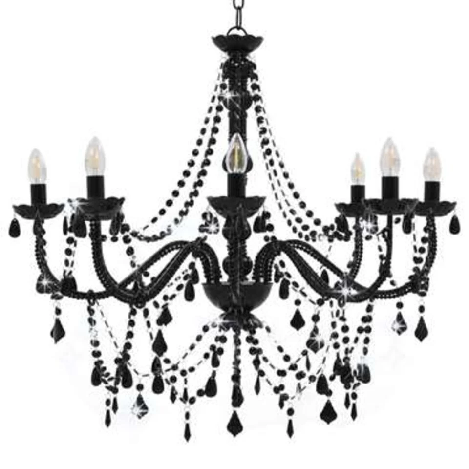 Deze chique kroonluchter met zwarte kralen maakt met zijn extravagante ontwerp zeker een gedurfd visueel statement en is een blikvanger in je interieur. Hij is geschikt voor zowel residentieel als commercieel gebruik.
