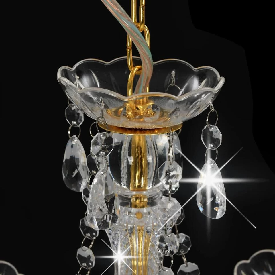 VidaXL Kroonluchter Met Kralen Rond 3xE14 Goudkleurig