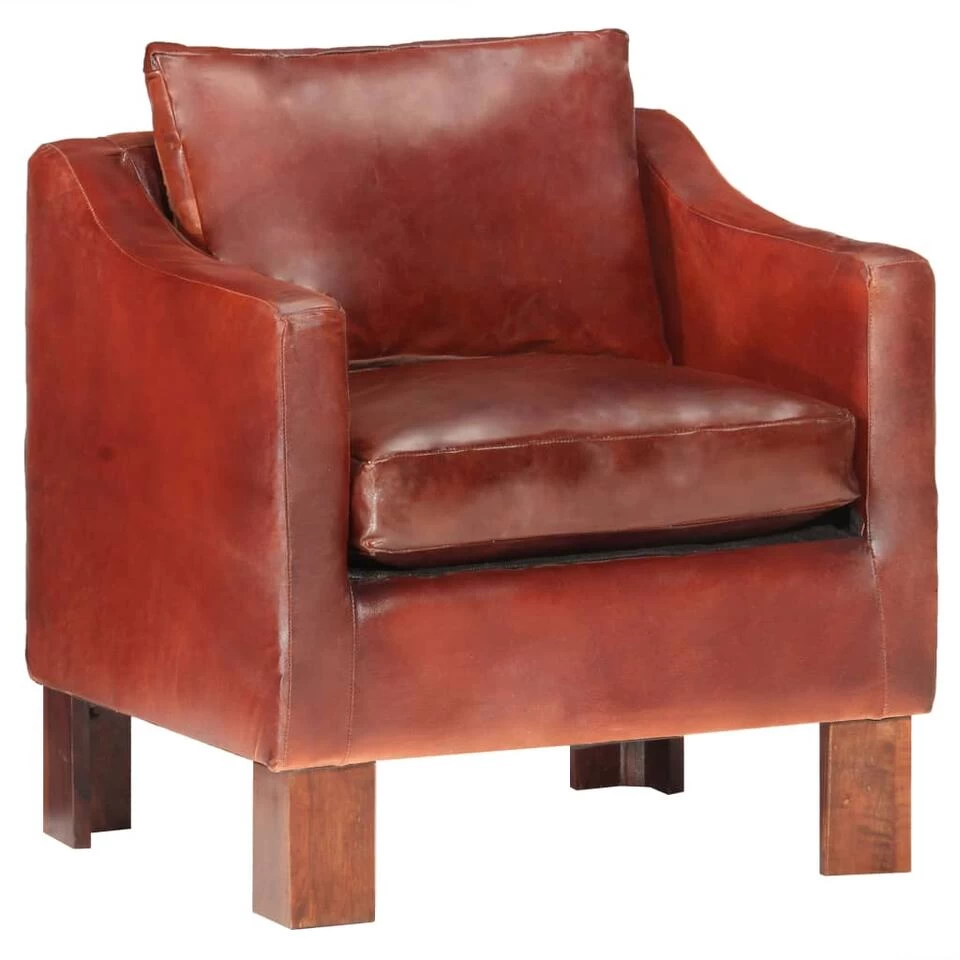 De stoel is bekleed met zacht, echt geitenleer. Hij is dik gevoerd voor comfort. De massief mangohouten poten zijn zeer stevig en duurzaam. De armstoel is eenvoudig te monteren.