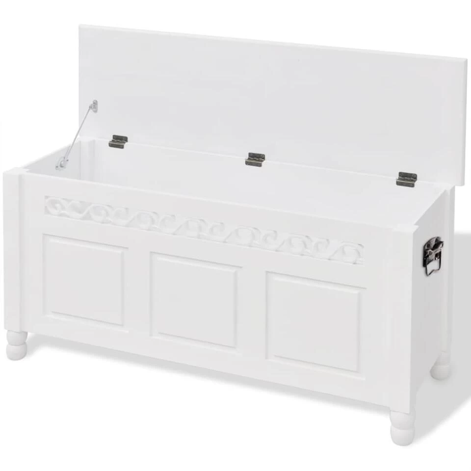 Deze opbergbank kan gemakkelijk geopend worden en hij heeft onder de zitting een groot opbergcompartiment om uw spullen in op te bergen. De verborgen interne opbergruimte maakt het bankje functioneel zonder af te doen aan zijn stijlvolle uiterlijk. De opbergkist is gemaakt van hoogwaardig MDF en is daarmee erg duurzaam.