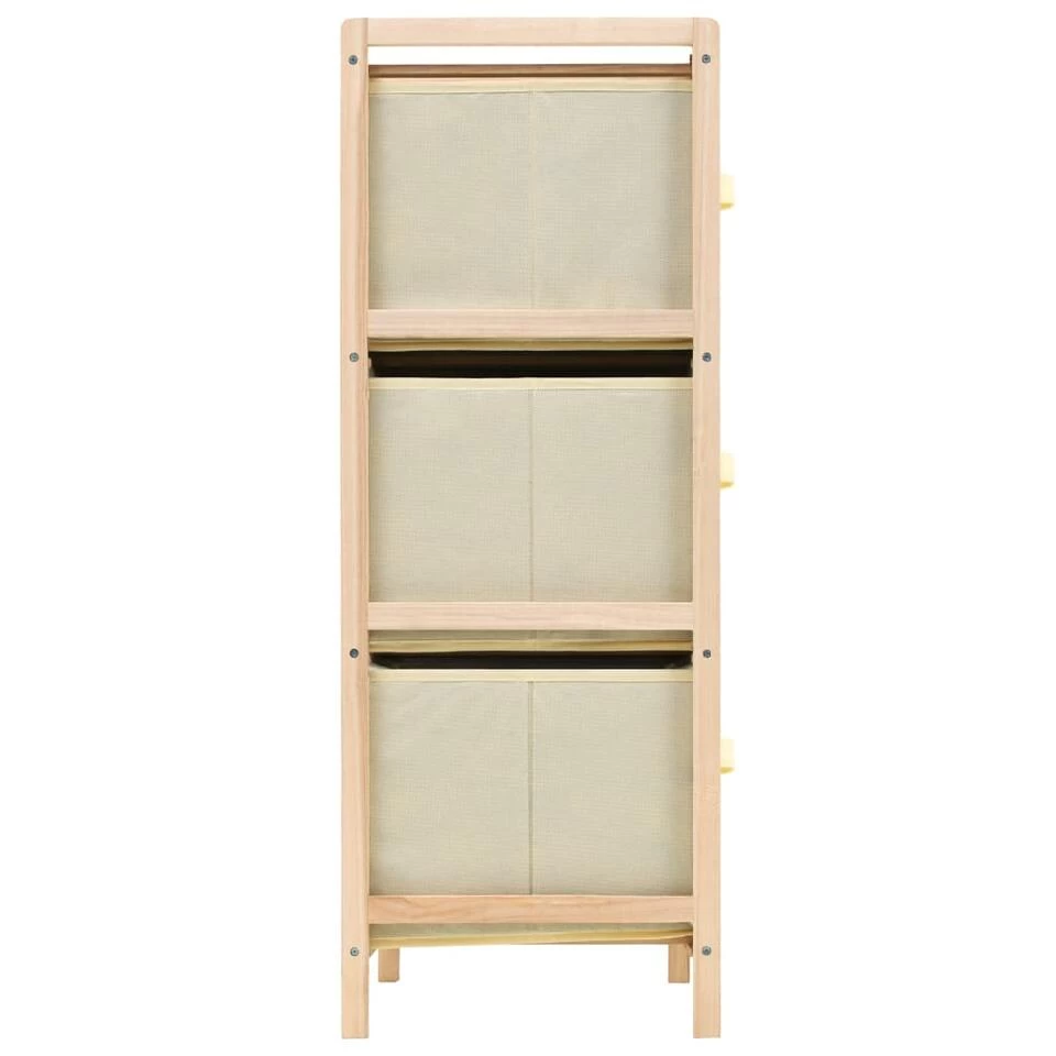 De houten opbergeenheid is lichtgewicht en kan makkelijk overal in huis worden neergezet. De opberglades zijn gemaakt van licht gekleurde stof om een elegant tintje aan je interieur toe te voegen.