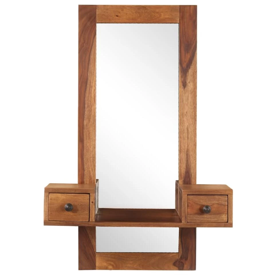 Dit product is gemaakt van massief sheeshamhout. Sheesham is een tropisch hardhout dat niet alleen bekend staat om zijn rijke nerven en ook wel palissander of rozenhout wordt genoemd. Deze decoratiespiegel is volledig met de hand gemaakt. De prachtige houtnerven maken elk meubel uniek en enigszins van elkaar verschillend. Elke stap van het proces wordt met de grootste zorg uitgevoerd, of het nu gaat om polijsten of lakken. De make-up-spiegel is eenvoudig te monteren.