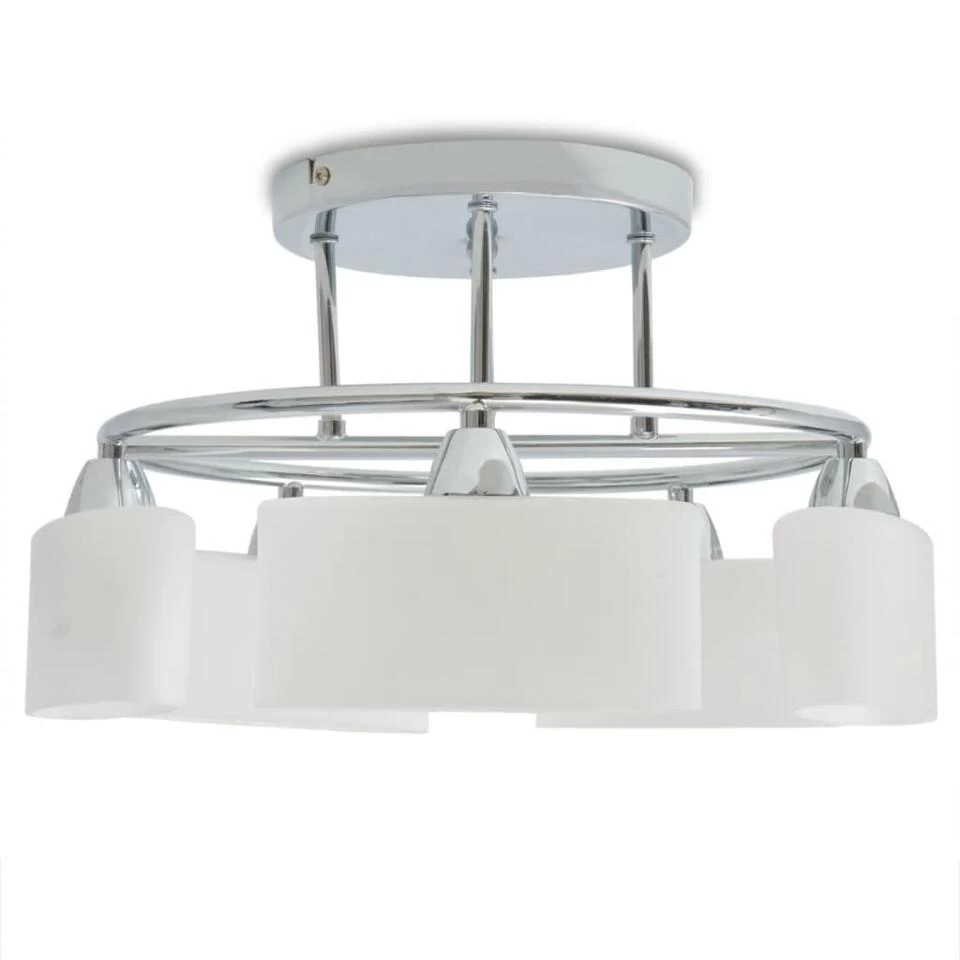 Deze unieke plafondlamp met 5 glazen kappen heeft een modern ontwerp en past bij het interieur van elke woon- en slaapkamer.