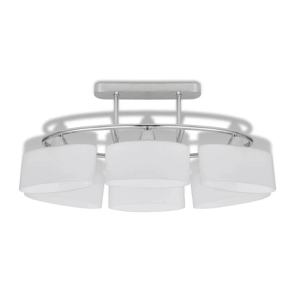 Deze unieke plafondlamp met 6 glazen kappen heeft een modern ontwerp. De chroomafwerking geeft deze lamp een moderne stijl – perfect voor elke woon- of slaapkamer.