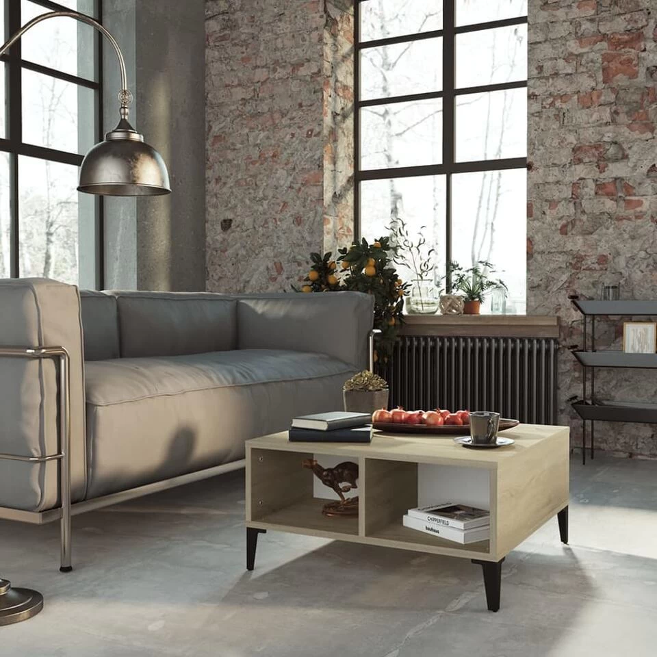 Deze middentafel is gemaakt van spaanplaat, wat zorgt voor stevigheid, duurzaamheid en langdurige dienstbaarheid. Daarnaast zorgen de metalen poten ook voor extra stabiliteit. Deze bijzettafel heeft 4 vakken, waardoor er voldoende opbergruimte is. Bovendien is het stevige tafelblad perfect voor het plaatsen van je drankjes, etenswaren en andere decoratieve items. Verder is de woonkamertafel makkelijk schoon te maken met een vochtige doek.