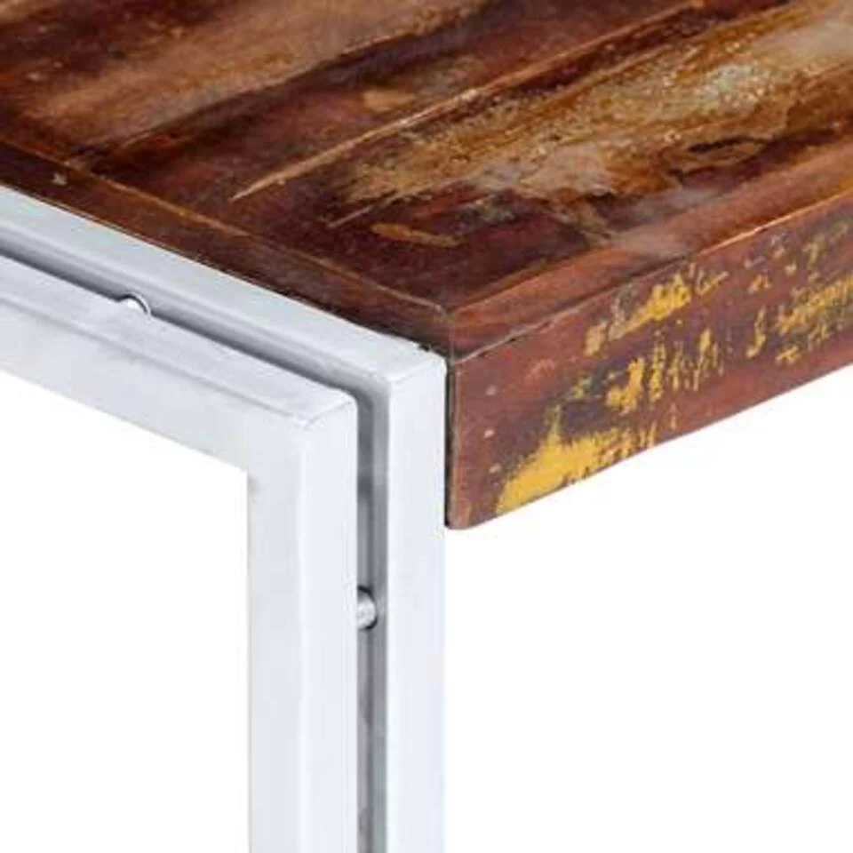 De woonkamertafel is gemaakt van massief hergebruikt hout dat afkomstig is van planken, vloeren en steunbalken van oude, afgebroken gebouwen en kan bestaan uit verschillende houtsoorten, zoals grenen, teak, beuken, eiken, ceder, mangohout en acacia. Dit betekent dat het hergebruikte hout de kenmerken van deze verschillende houtsoorten behoudt. Het hout is al verouderd, verweerd en gedroogd, dus het krimpt en buigt niet. Het prachtige vakmanschap en de aantrekkelijke houtnerven maken elk meubelstuk uniek en enigszins anders dan de rest. De tafel is volledig handgemaakt en elke stap van het proces wordt met de grootste zorg uitgevoerd, of het nu polijsten, verven of lakken is. Daarnaast draagt het gepoedercoate frame bij aan de stevige constructie en de industriële charme van de woonkamertafel. Dit product is eenvoudig te monteren.