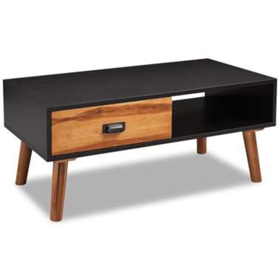 De salontafel is vakkundig gemaakt van massief acaciahout en hoogwaardig MDF en is daarmee erg stevig en duurzaam. Het heeft een lade en een open vak, die veel ruimte bieden voor het georganiseerd en binnen handbereik opbergen van je multimedia-apparaten, boeken, magazines of andere items. Het tafelblad is ideaal voor het uitstallen van decoratieve objecten, fotolijstjes of kamerplanten.