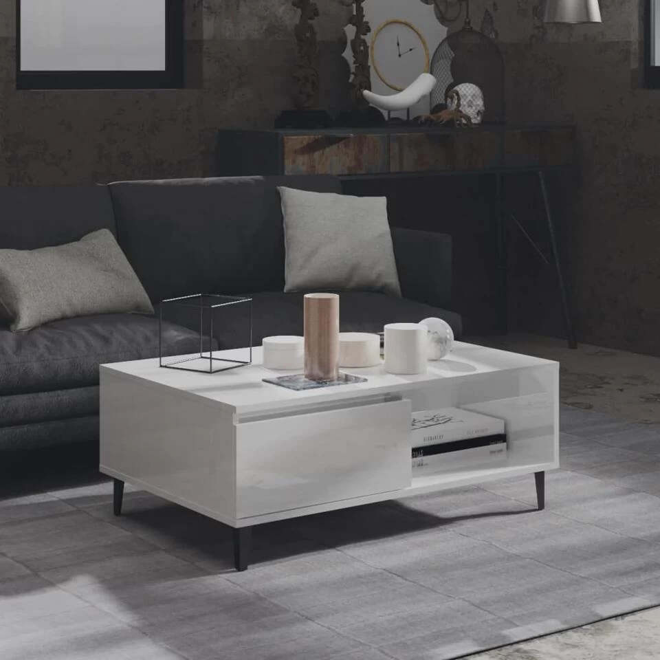 Deze middentafel is gemaakt van spaanplaat, wat zorgt voor stevigheid, duurzaamheid en langdurige dienstbaarheid. Daarnaast zorgen de metalen poten ook voor extra stabiliteit. Deze bijzettafel heeft voldoende opbergruimte en het stevige tafelblad is perfect voor het plaatsen van je drankjes, etenswaren en andere decoratieve items. Verder is de woonkamertafel makkelijk schoon te maken met een vochtige doek.