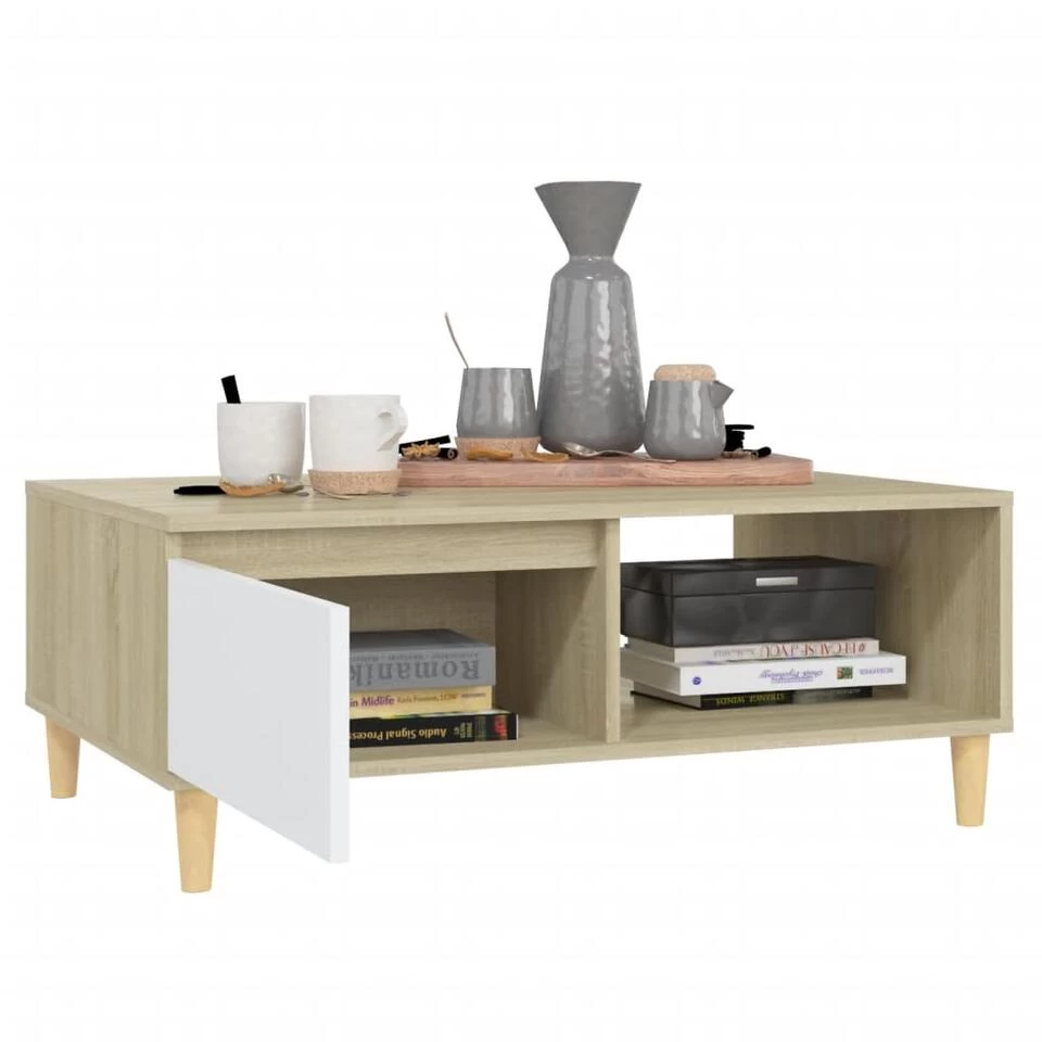 Deze middentafel is gemaakt van spaanplaat, wat zorgt voor stevigheid, duurzaamheid en langdurige dienstbaarheid. Deze bijzettafel heeft voldoende opbergruimte en het stevige tafelblad is perfect voor het plaatsen van je drankjes, etenswaren en andere decoratieve items. Verder is de woonkamertafel makkelijk schoon te maken met een vochtige doek.