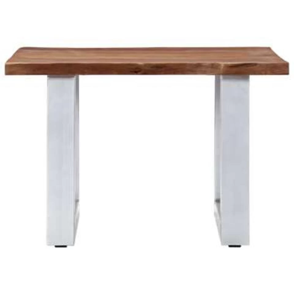 - Materiaal: massief acaciahout met een sheesham afwerking (tafelblad) en gepoedercoat ijzer (poten)