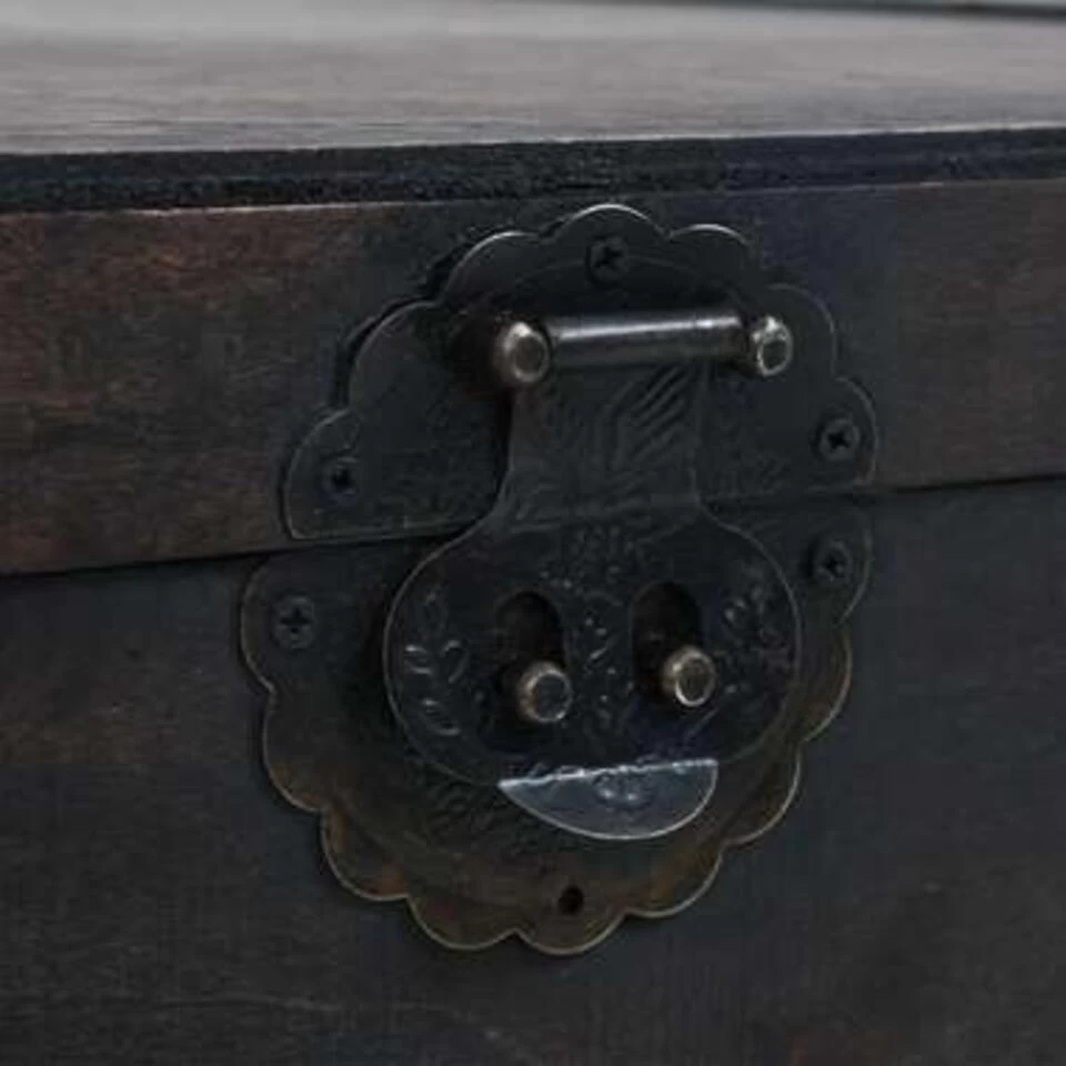 Deze salontafel is gemaakt van massief hout met een antieke kleurstijl en is gedecoreerd met kunstleren banden en metalen elementen. Hierdoor heeft de tafel een vintage charme. De houten salontafel heeft een groot opbergvak voor kleding, boeken, tijdschriften en alles wat je graag binnen handbereik maar niet in het zicht wilt hebben. Dankzij de vintage look grendel en handvatten is de salontafel gemakkelijk te sluiten en te verplaatsen. Montage is eenvoudig.