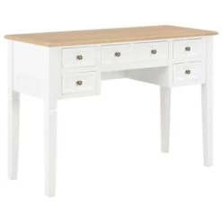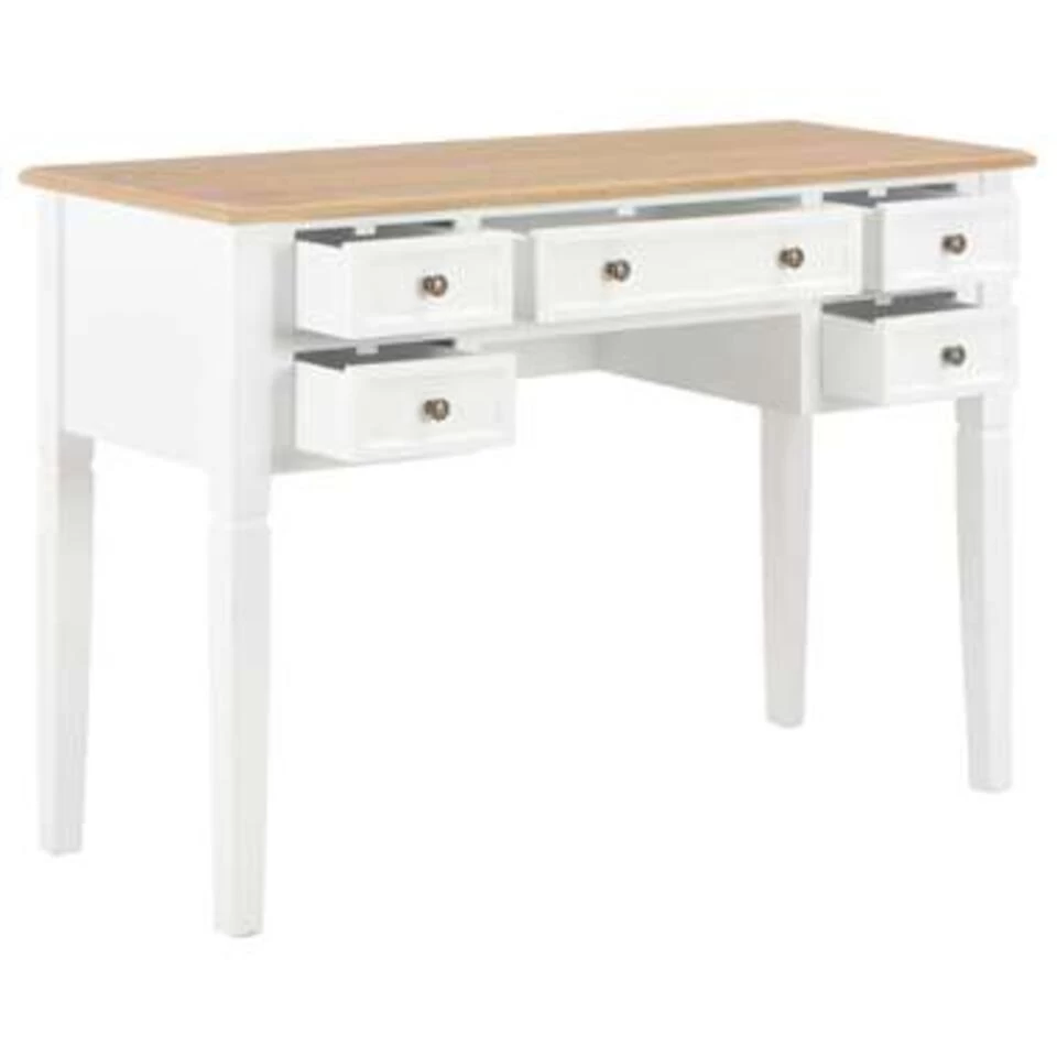 Dit stevige bureau is gemaakt van hoogwaardig MDF en grenenhout en is wit geschilderd.