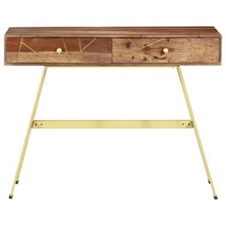Het bureaublad is gemaakt van massief sheeshamhout dat een tropisch hardhout is dat bekend staat om zijn rijke nerven en ook wel rozenhout of palissander genoemd wordt. De sterke stalen poten dragen bij aan de stevigheid en industriële charme. Elke stap van het proces wordt met de grootste zorg uitgevoerd, of het nu polijsten, schilderen of lakken is. Daarnaast heeft de tafel 2 lades met voldoende ruimte om je belangrijke spullen georganiseerd en binnen handbereik te houden. Dit product is eenvoudig te monteren.