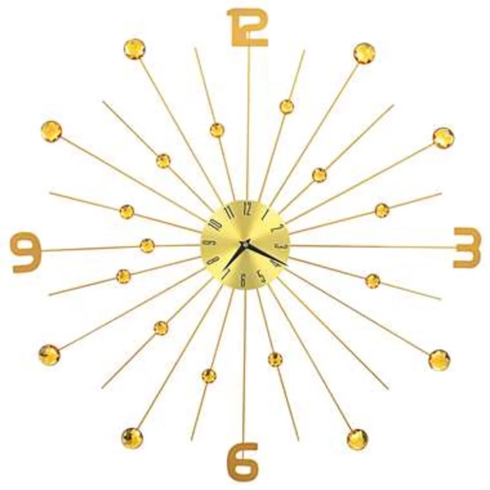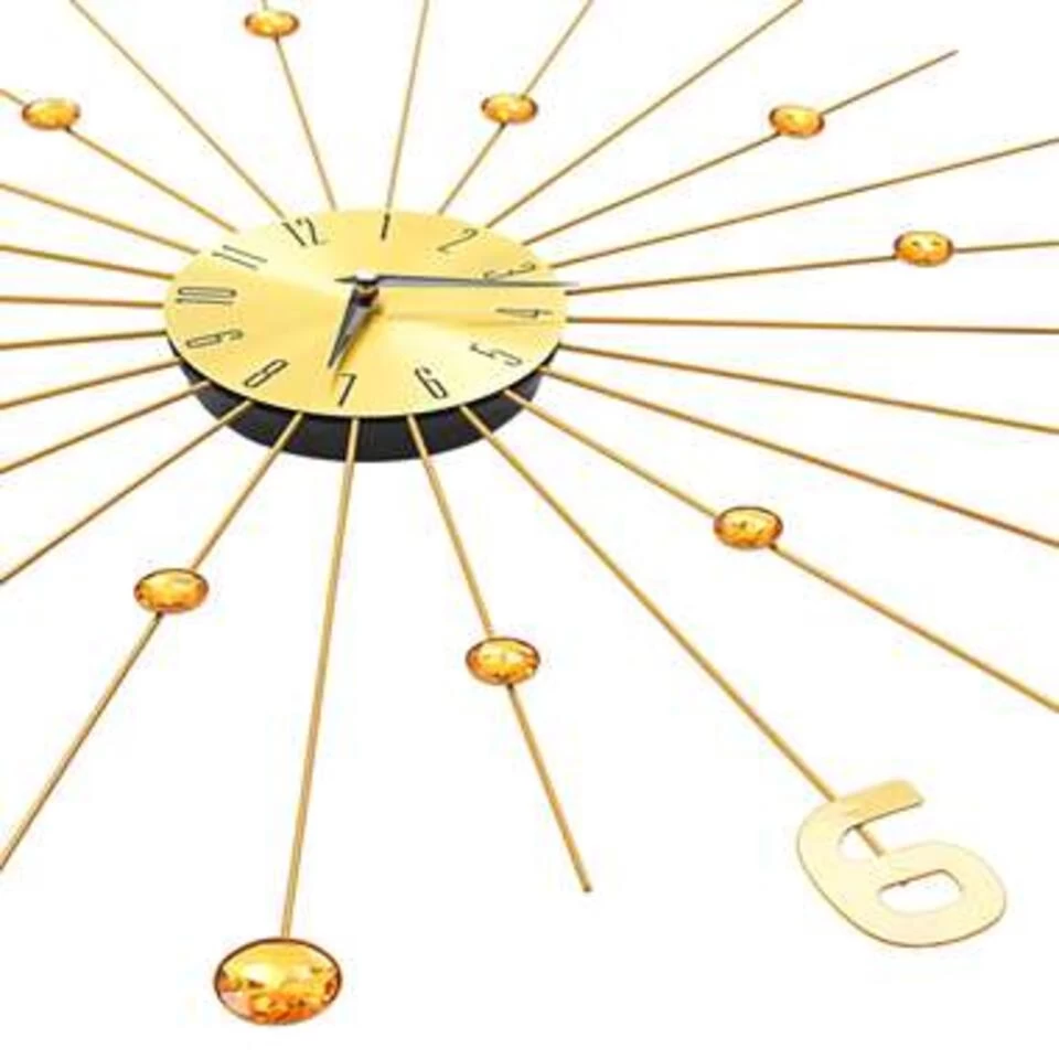 Haal een blikvanger in huis met onze prachtige, goudkleurige metalen wandklok! De prachtige kristallen details maken van deze wandklok echt een prachtig uurwerk en een geweldige toevoeging aan je inrichting.
