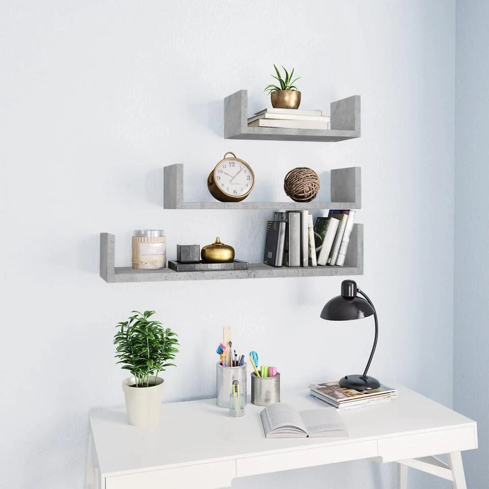 De schappen zijn gemaakt van bewerkt hout waardoor ze stevig en duurzaam zijn. Het U-vormige ontwerp biedt perfecte weergave- of opbergruimte voor boeken, cd’s, bloemen en andere spullen.