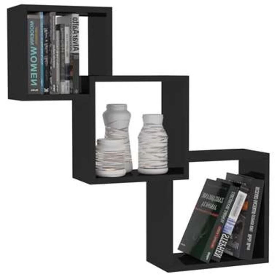 Met 3 kubussen met een in elkaar grijpend ontwerp dient de wandplankenset als de perfecte plek om je boeken, onderscheidingen, verzamelobjecten, ornamenten, enz. op te bergen en weer te geven. De muurkubusset is gemaakt van bewerkt hout en is buitengewoon stevig en duurzaam. Bovendien is de hangende set eenvoudig aan de muur te bevestigen dankzij de inbegrepen bevestigingsmaterialen.