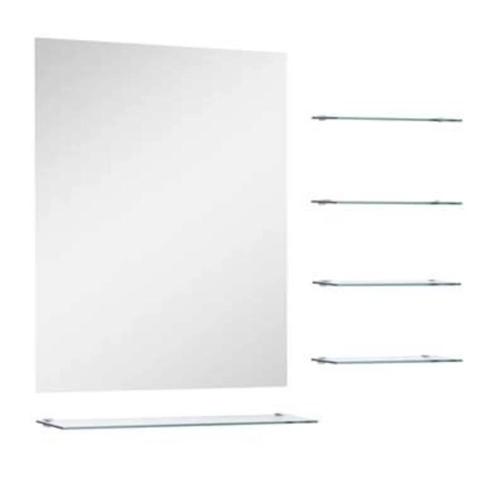 Dit badkamermeubel is gemaakt van hoogwaardig gehard glas waardoor hij duurzaam en gemakkelijk schoon te maken is. De rechthoekige spiegel met een minimalistisch en eigentijds ontwerp verbetert elke ruimte, terwijl de 4 kleine schappen en 1 groot schap praktische opslagruimte bieden. Je kan je spulletjes netjes opbergen en uitstallen.