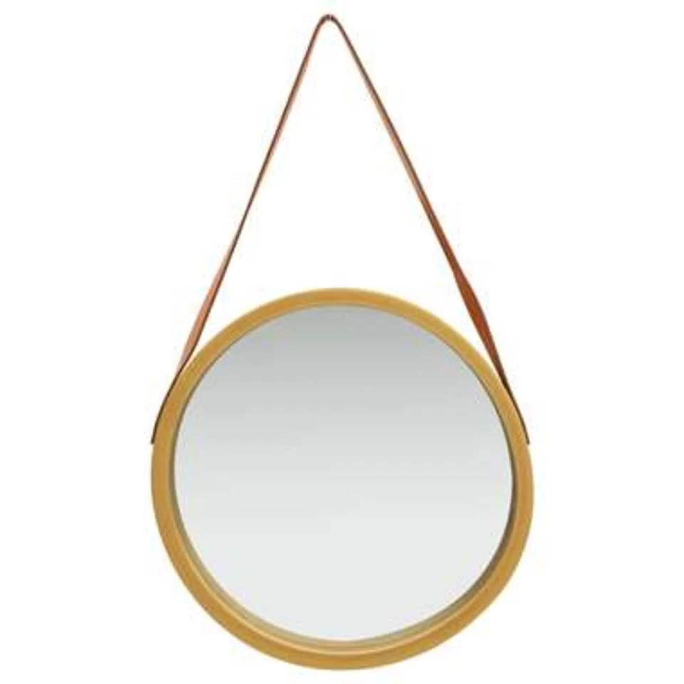 Deze trendy hangende spiegel geeft moderne interieurs een vintage vleugje. De grote, ronde spiegel is omlijst door duurzaam, natuurlijk paulowniahout en kan worden opgehangen aan de gladde, zacht aanvoelende kunstleren band. Dankzij de band kan je de spiegel op elke gewenste hoogte hangen, waardoor hij dus zeer flexibel is.