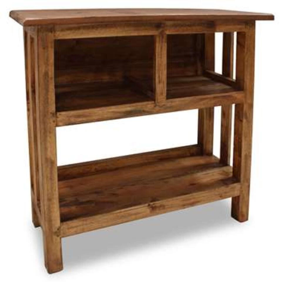 Dit meubel is gemaakt van massief hergebruikt hout dat de kenmerken heeft van verschillende houtsoorten zoals mahoniehout, teakhout, mangohout, acaciahout, enz. Elke tafel is uniek en nét iets anders dan de rest. Tekenen van slijtage dragen bij aan de spectaculaire vintage stijl en geven elke wandtafel een unieke uitstraling. Omdat de tafel gemaakt is van gerecycled hout, kan hij oneffenheden vertonen die de authentieke waarde en rijke geschiedenis weergeven. Het hout komt van natuurlijk omgevallen bomen, oude boten, afgebroken houten huizen, enz.
